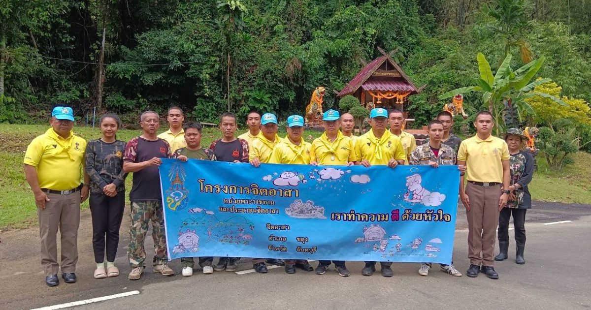 จิตอาสาพัฒนา “ ปลูกต้นไม้ เก็บขยะ ทำความสะอาด น้ำตกตรอกนอง ” 13 มีนาคม 2025 โดย khlung / งานอำนวยการ,งานอำนวยการ มี.ค.68 วันพฤหัสบดีที่ 13 มี.ค.68 เวลา 10.00 น. พ.ต.อ.ไตรสิทธิ์ โภคธรรมธนาชัย ผกก.สภ.ขลุง มอบหมายให้ ร.ต.ท.อุเทน ปันนาศรี รอง สว.(สส.) สภ.ขลุง พร้อมข้าราชการตำรวจจิตอาสา สภ.ขลุง จำนวน 10 นาย ร่วมกับ สิบตรี มวล เขียวปล้อง หัวหน้าอุทยานน้ำตกพลิ้วที่ 1 น้ำตกตรอกนองพร้อมเจ้าหน้าที่ป่าไม้ จำนวน 8 นาย ร่วมกิจกรรมจิตอาสาพัฒนา “ ปลูกต้นไม้ เก็บขยะ ทำความสะอาด สถานที่ท่องเที่ยว ” ณ น้ำตกตรอกนอง ต.ตรอกนอง อ.ขลุง จว.จันทบุรี