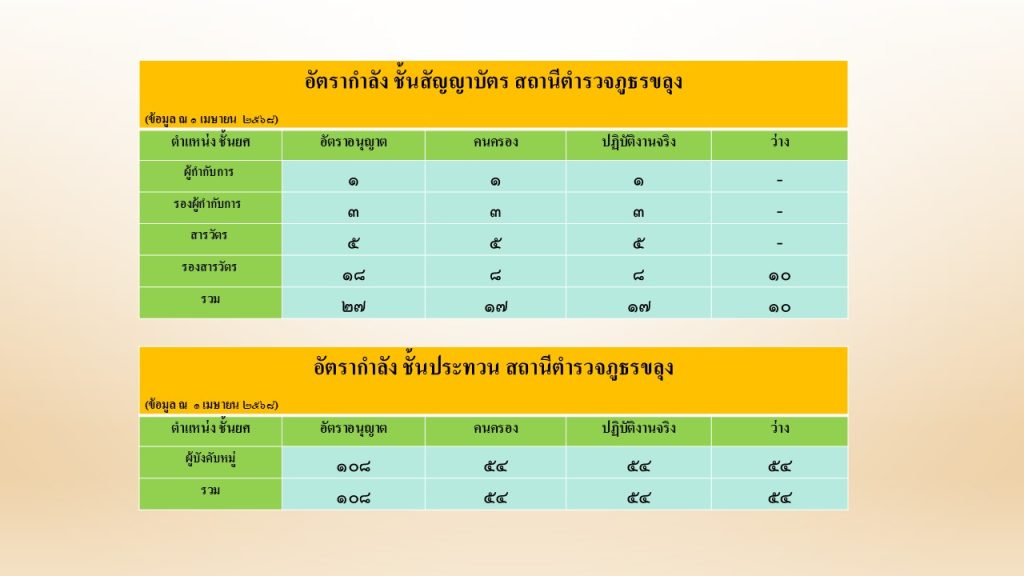 อัตรากำลัง ชั้นสัญญาบัตรและชั้นประทวน สถานีตำรวจภูธรขลุง